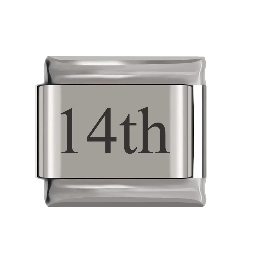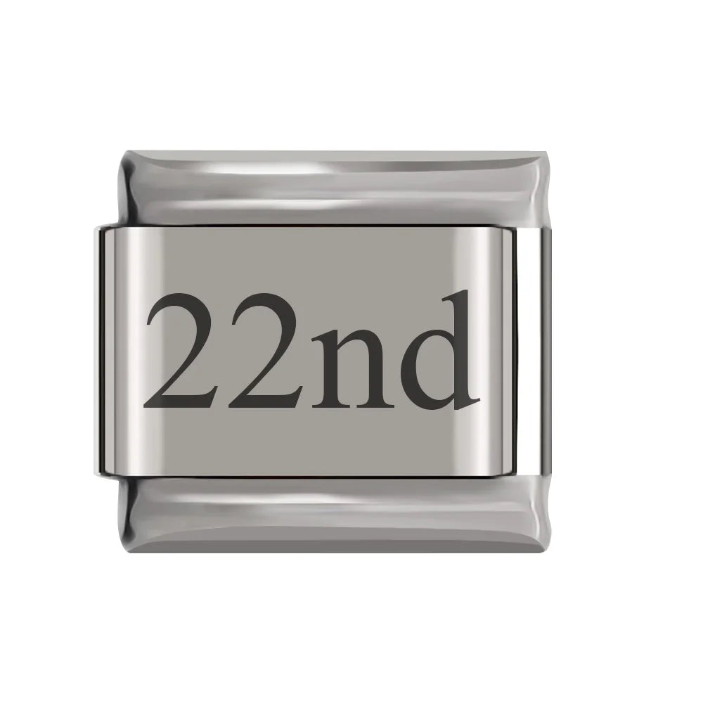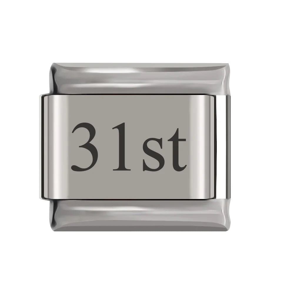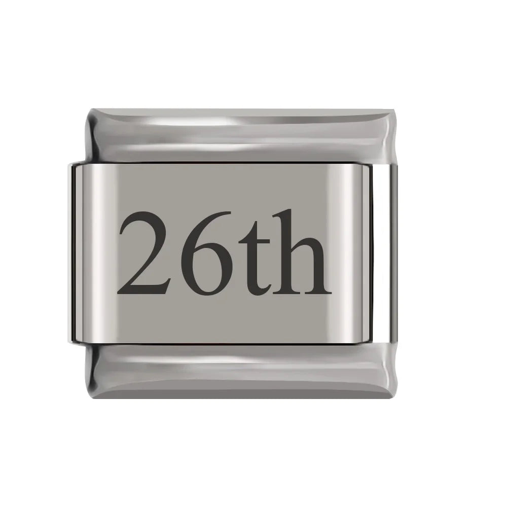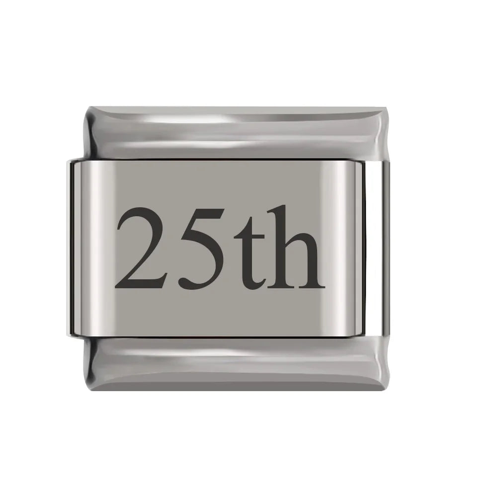 Stříbrný "Charm" z nerezové oceli s daty narození v černé barvě.