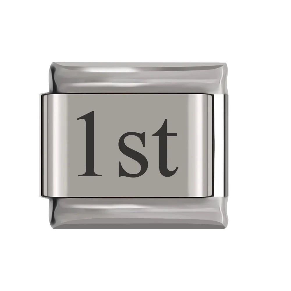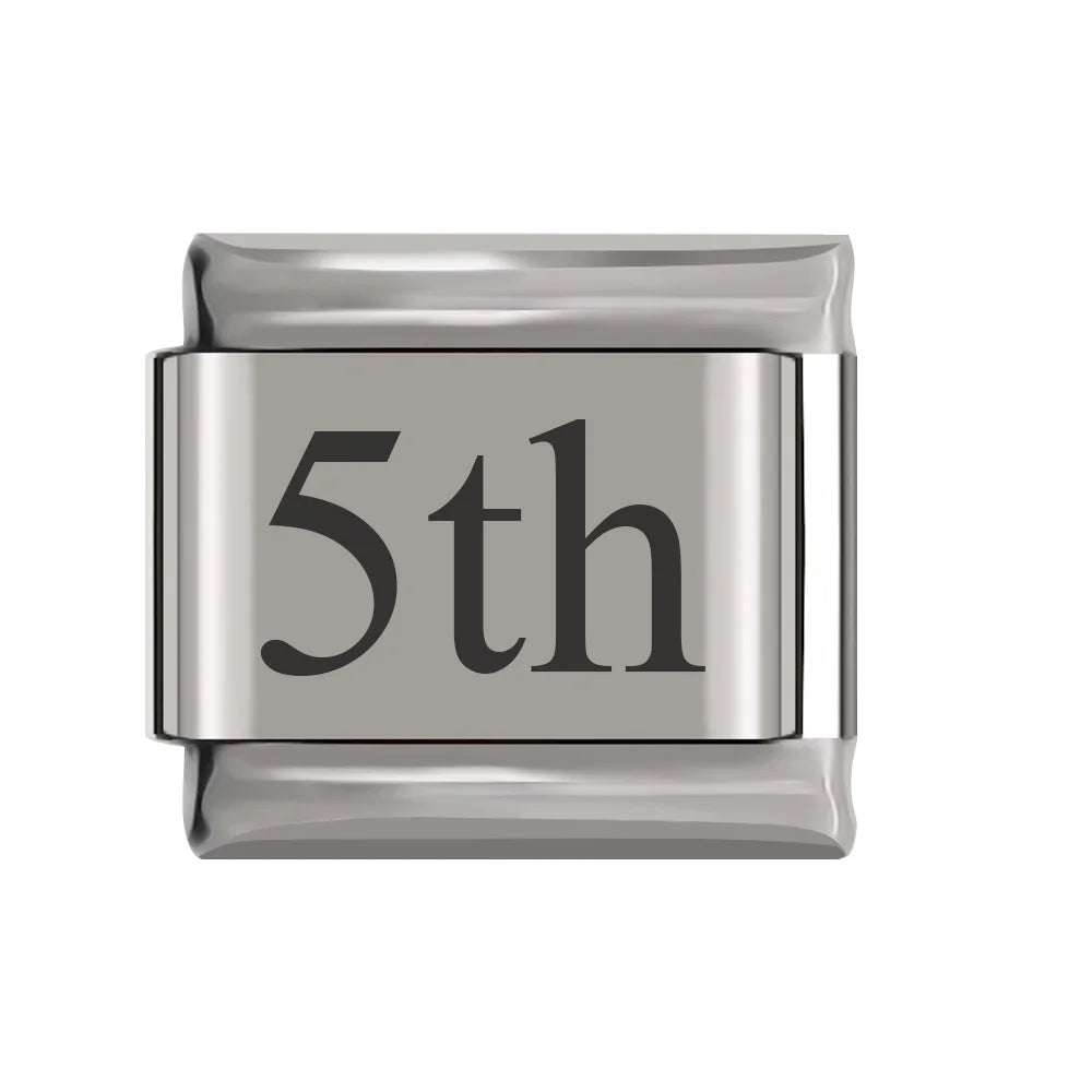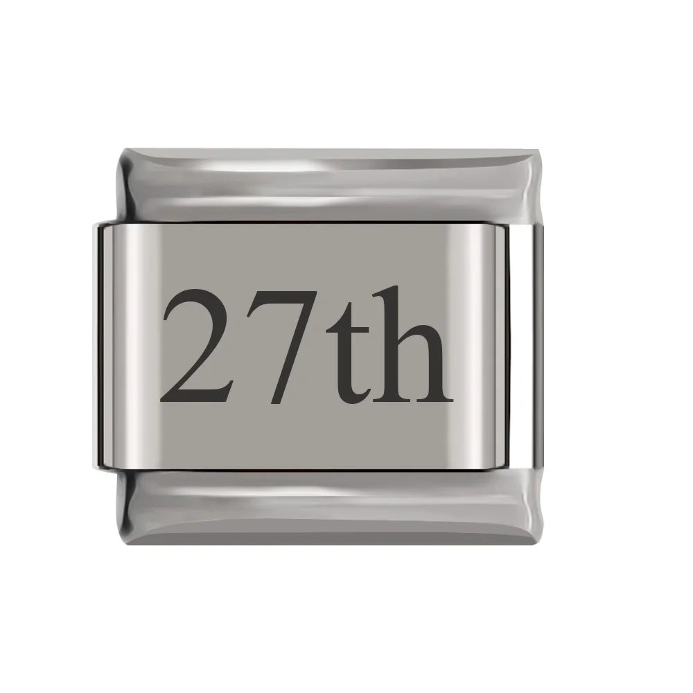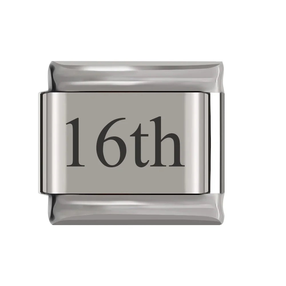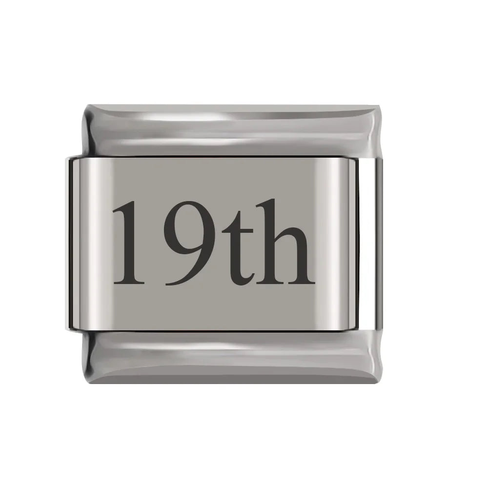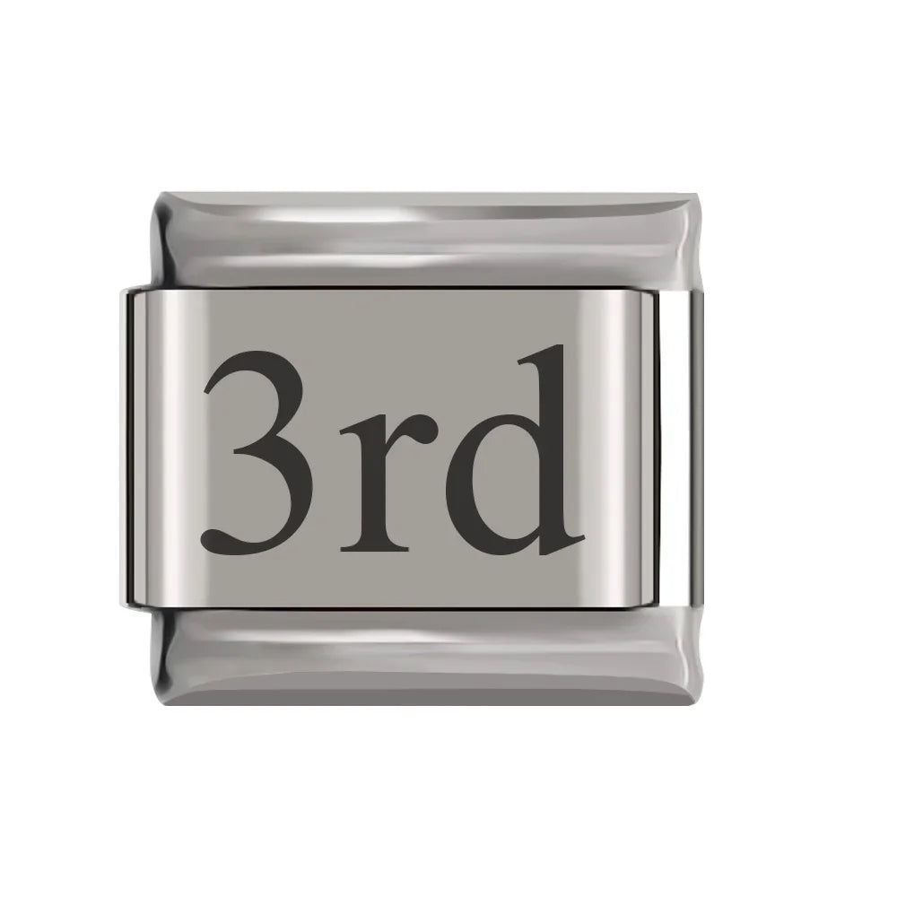 Stříbrný "Charm" z nerezové oceli s daty narození v černé barvě.