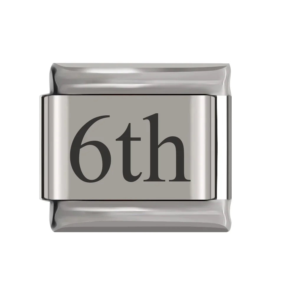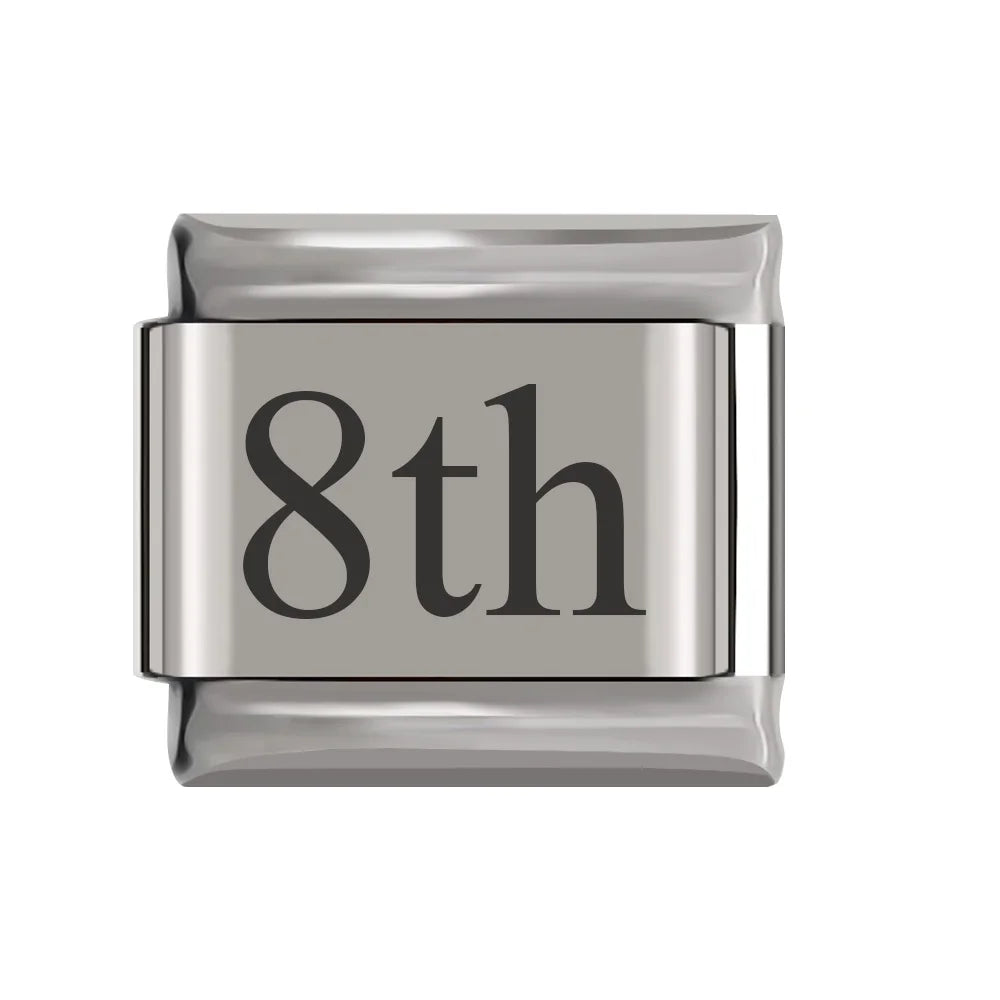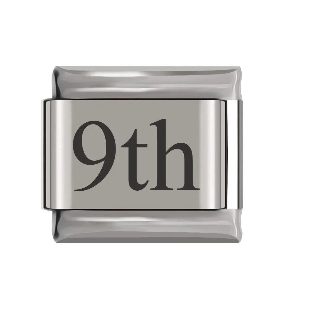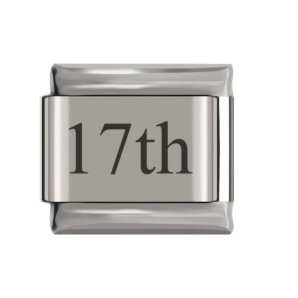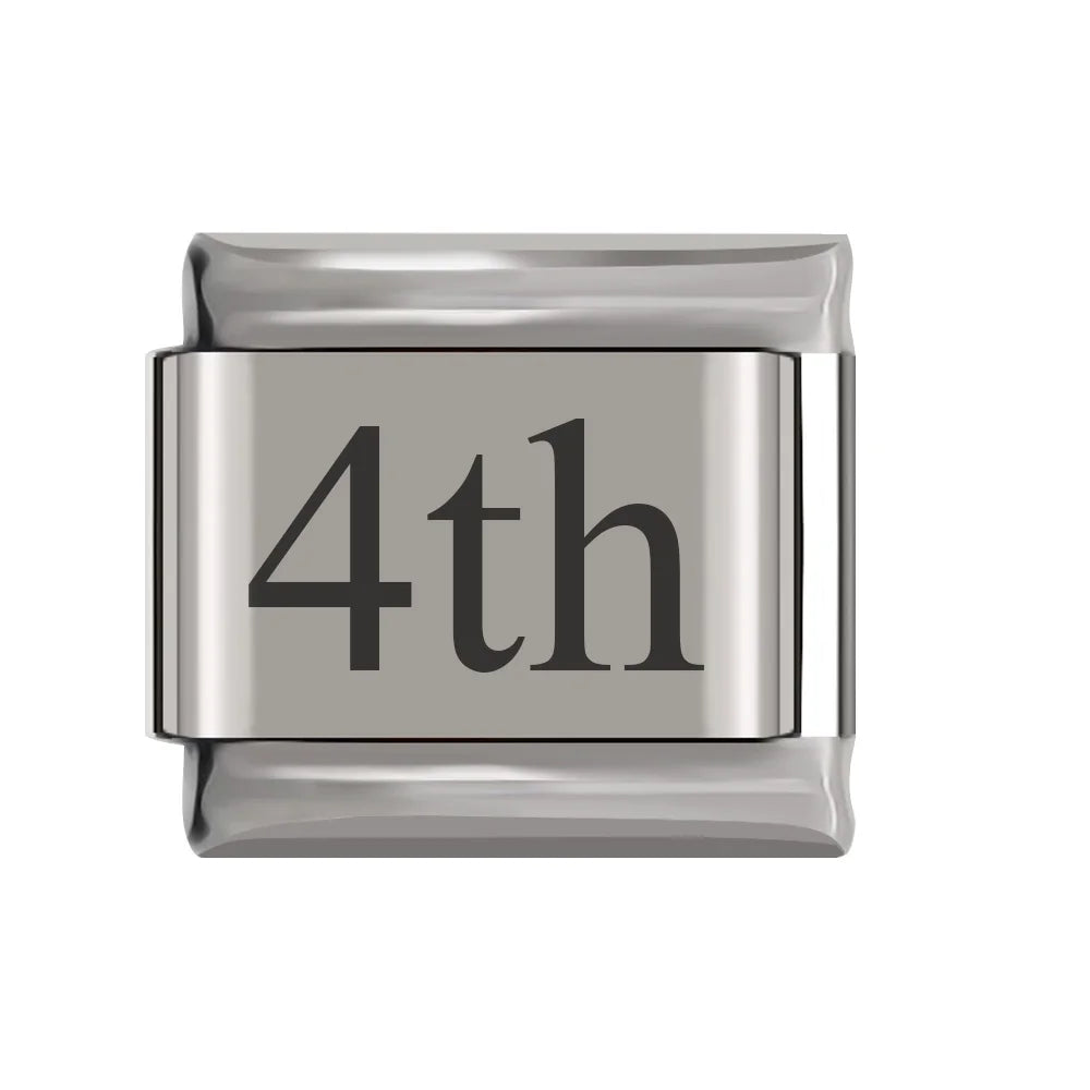 Stříbrný "Charm" z nerezové oceli s daty narození v černé barvě.