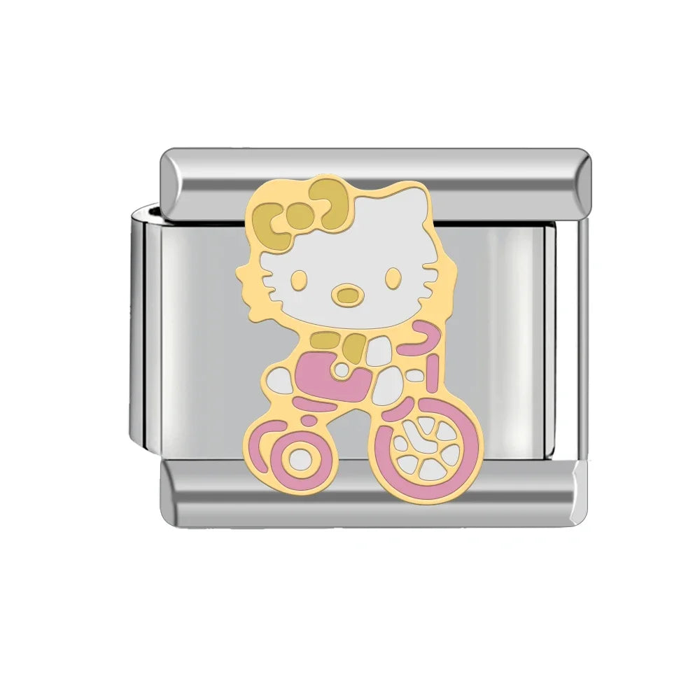 "Charm" z nerezové oceli ve stříbrné barvě s Hello Kitty s kolem.