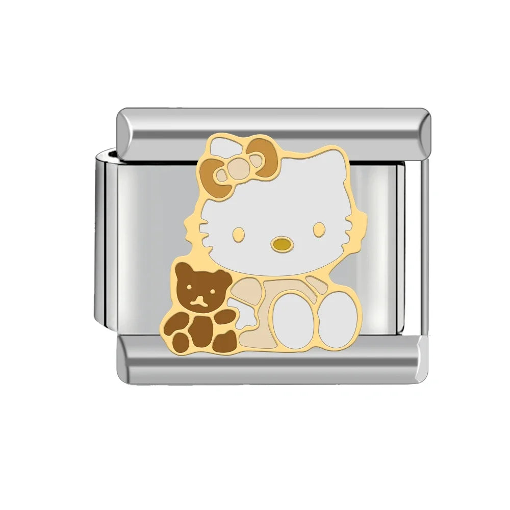 "Charm" z nerezové oceli ve stříbrné barvě s Hello Kitty s medvídkem.