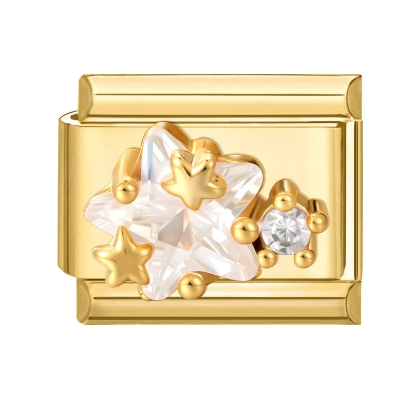 Zlatý "Charm" z nerezové oceli s hvězdami s gemy.