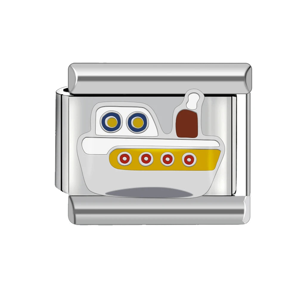 Stříbrný "Charm" z nerezové oceli s lodí s postavou.