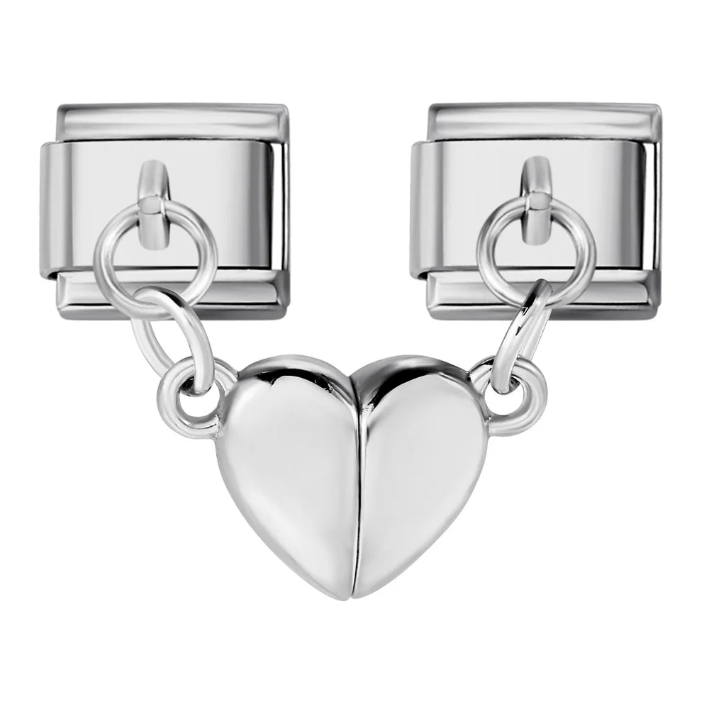 Stříbrný "Charm" z nerezové oceli s s magnetickými srdíčky. Obsahuje 2 ks charms.