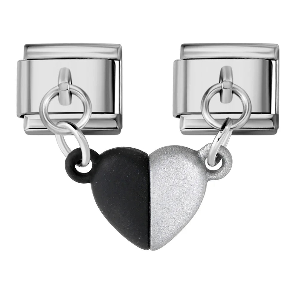 Stříbrný "Charm" z nerezové oceli s s magnetickými srdíčky. Obsahuje 2 ks charms.
