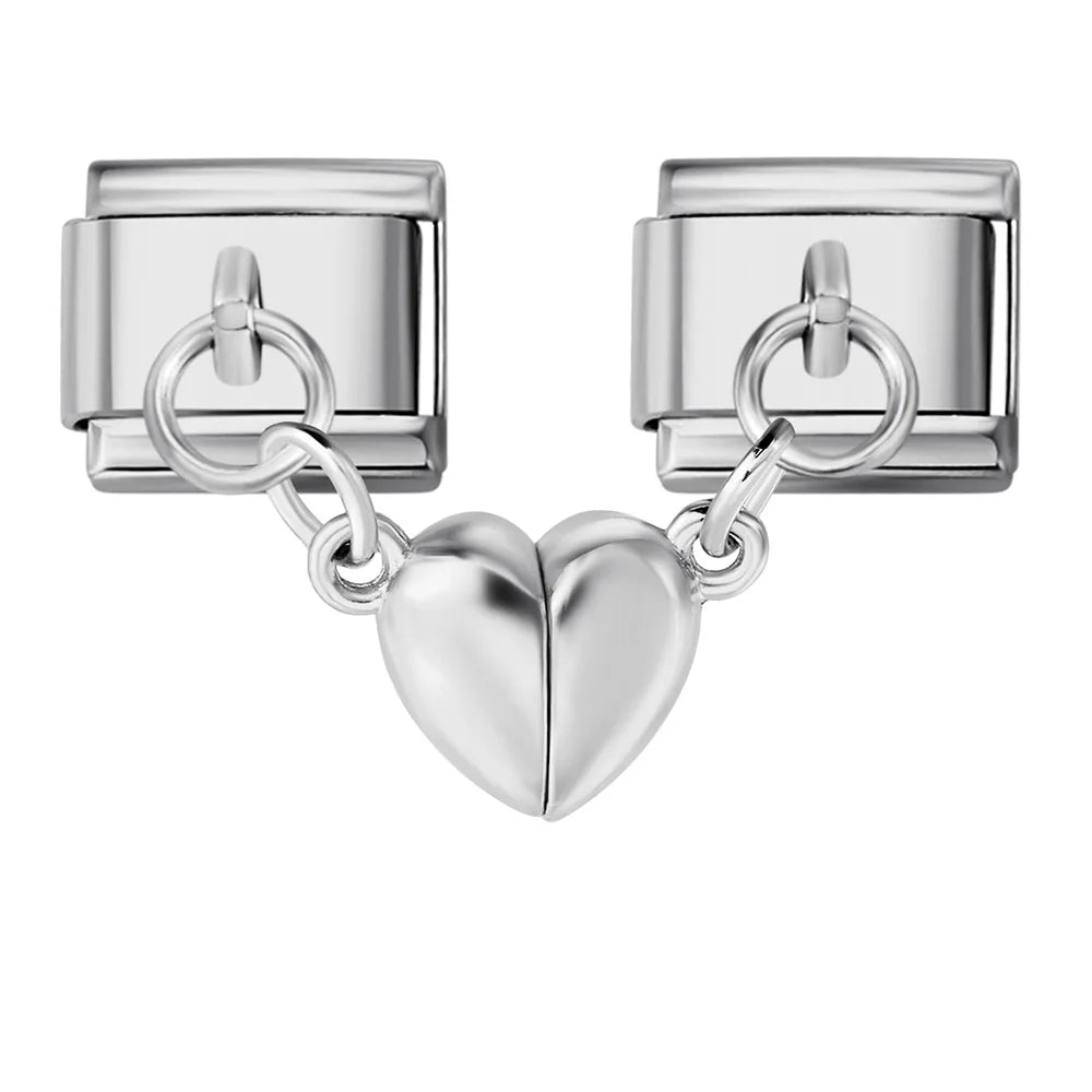 Stříbrný "Charm" z nerezové oceli s s magnetickými srdíčky. Obsahuje 2 ks charms.
