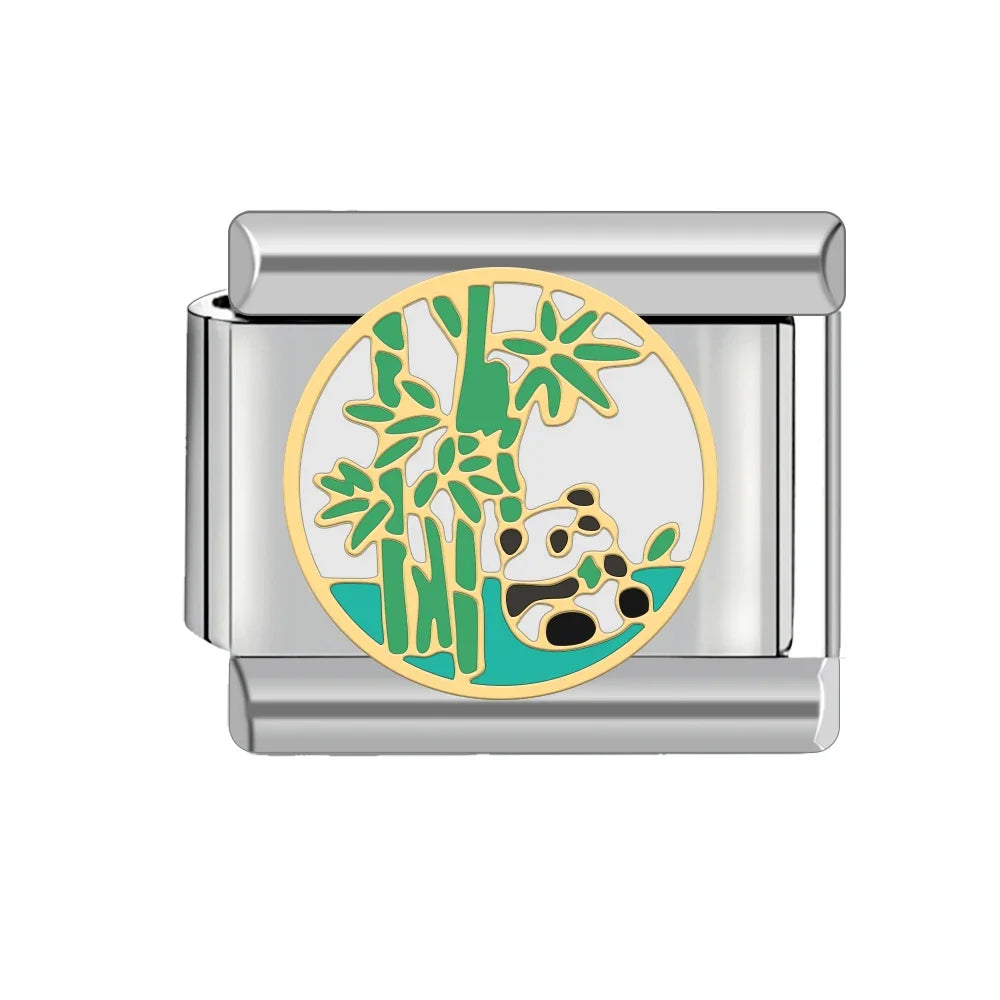 "Charm" z nerezové oceli ve stříbrné barvě s pandou s bambusem.