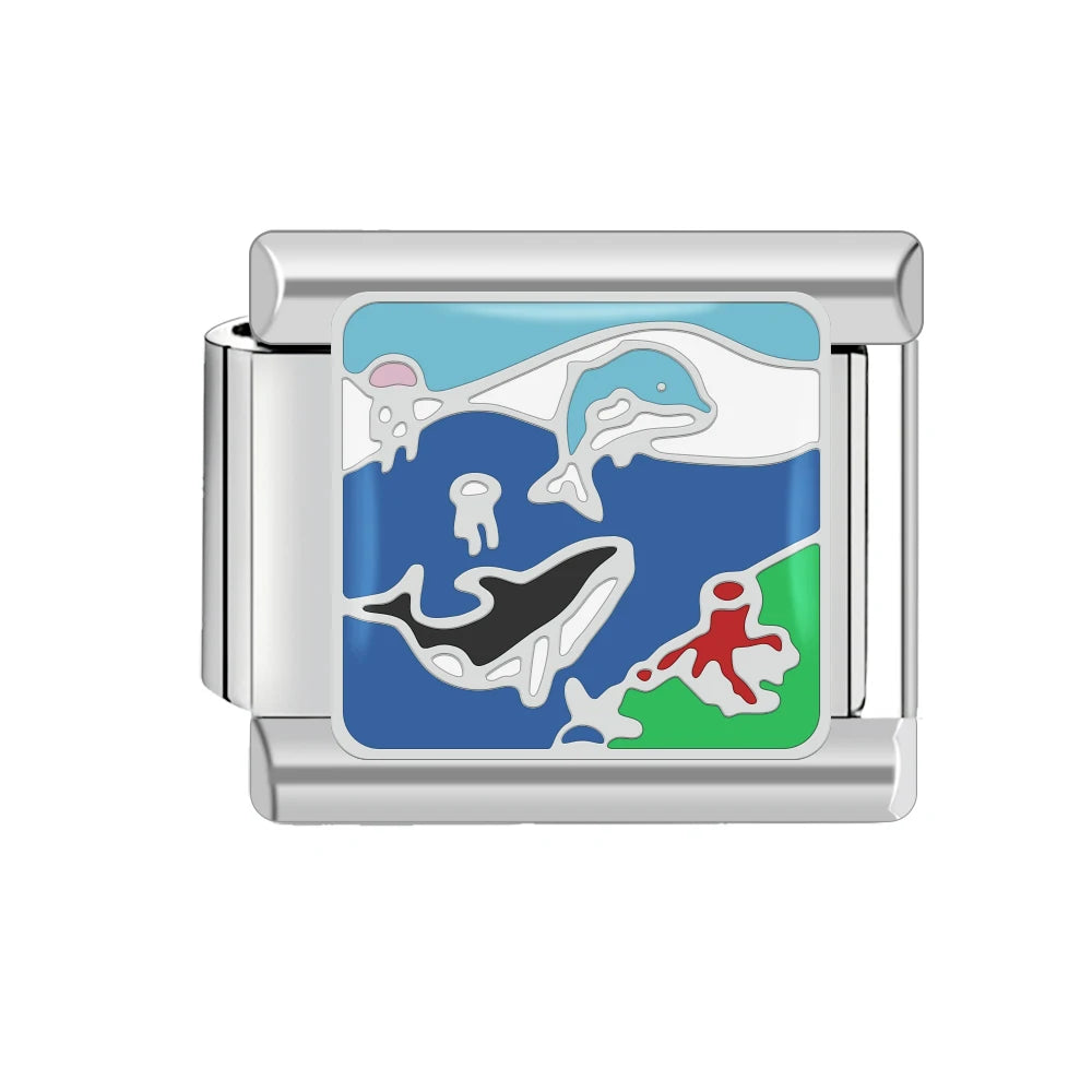 Stříbrný "Charm" z nerezové oceli s podmořským světem.