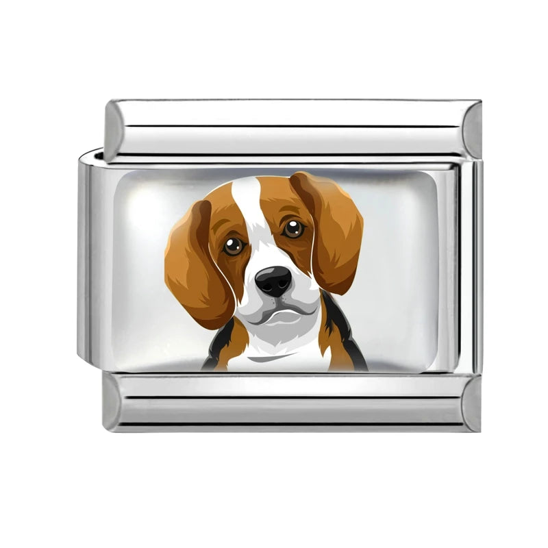 "Charm" z nerezové oceli ve stříbrné barvě s roztomilým pejskem rady Beagel.
