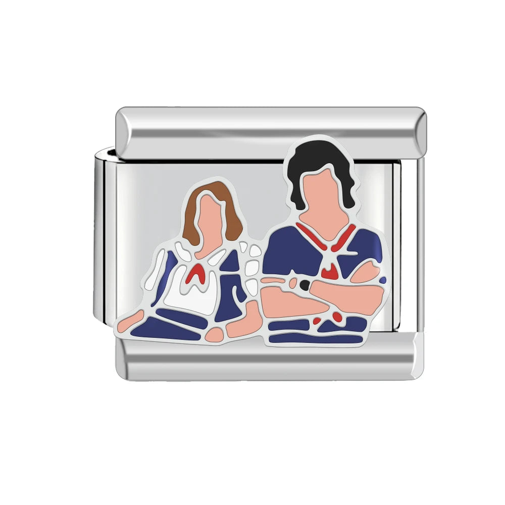 "Charm" z nerezové oceli ve stříbrné barvě s postavami Eleven a Mike ze seriálu Stranger Things.
