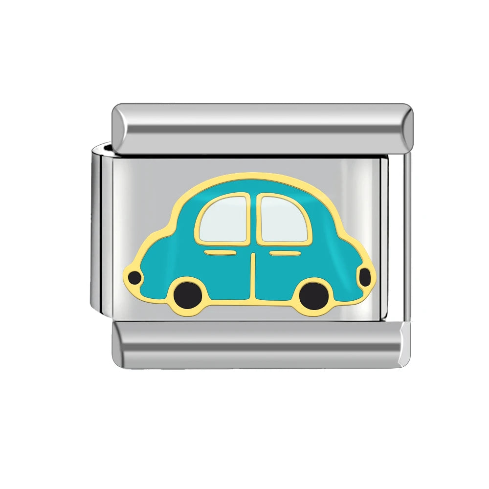 Stříbrný "Charm" z nerezové oceli s tyrkysovým autem.