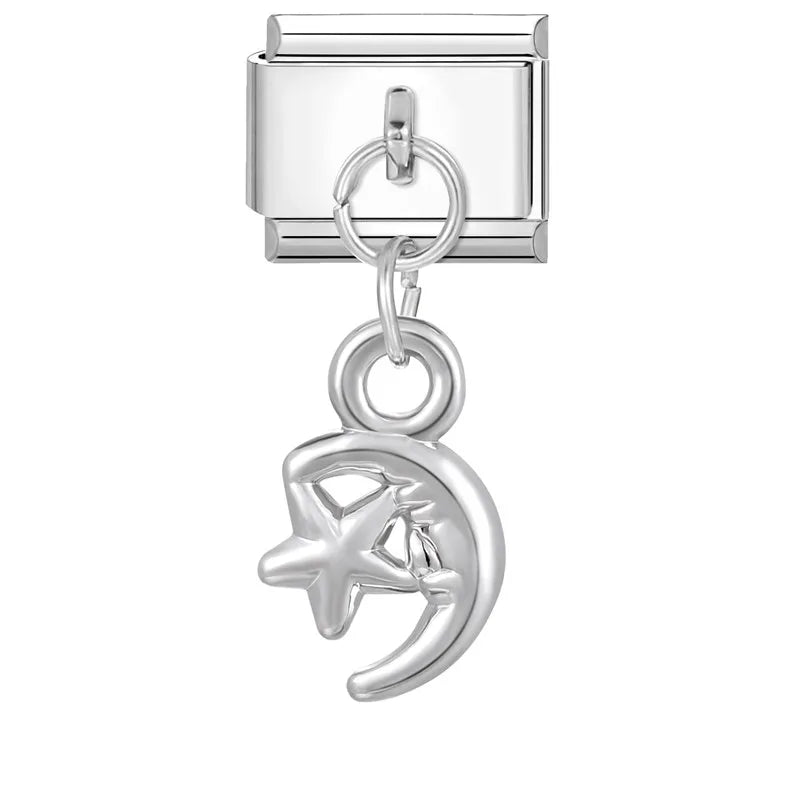 Stříbrný visící "Charm" z nerezové oceli s měsícem a hvězdou.