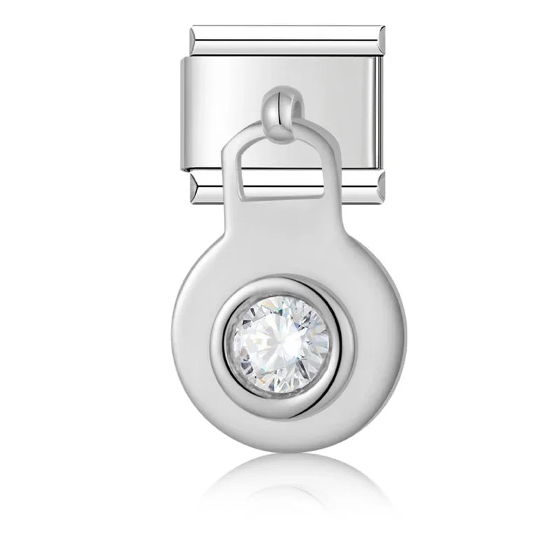 Stříbrný "Charm" z nerezové oceli s pendantem a gemem.