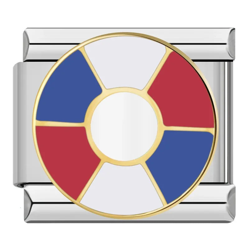 "Charm" z nerezové oceli ve stříbrné barvě s barevným kruhem.