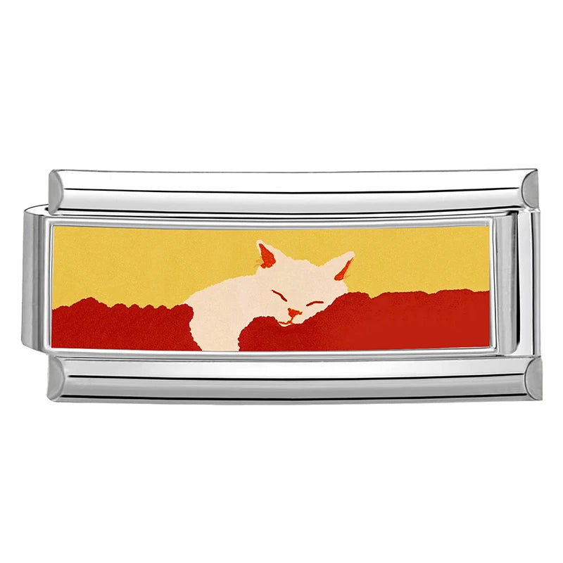 "Double Charm" z nerezové oceli s béžovou spící kočkou.