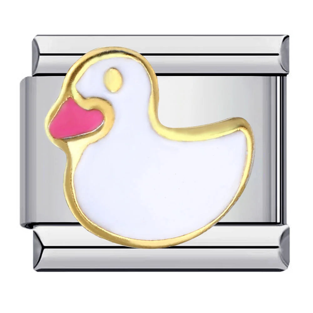 Stříbrný "Charm" z nerezové oceli s bílou kachničkou.
