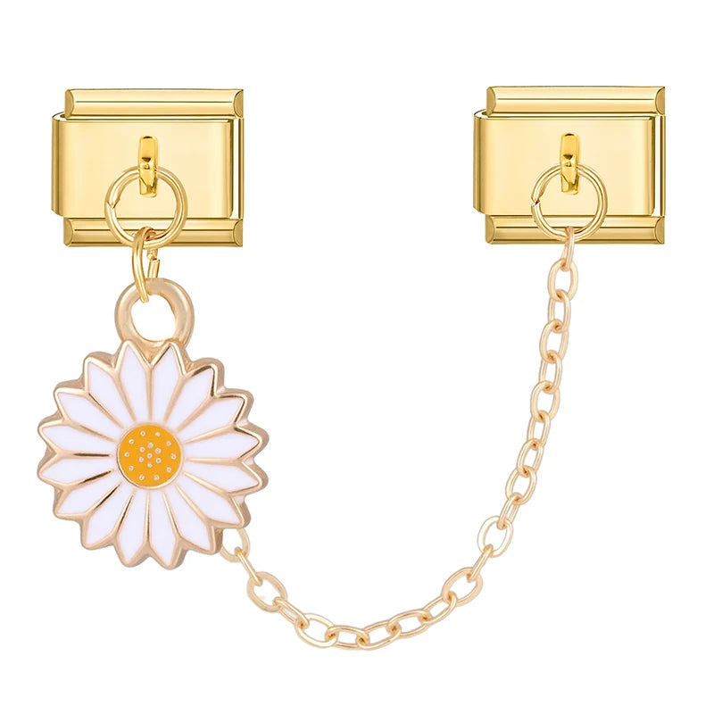 Zlatý chain "Charm" z nerezové oceli s bílou kopretinou.