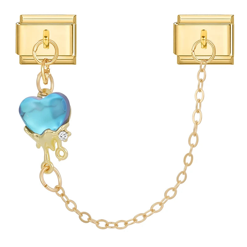 Zlatý chain "Charm" z nerezové oceli s gemem v podobě modrého srdce.