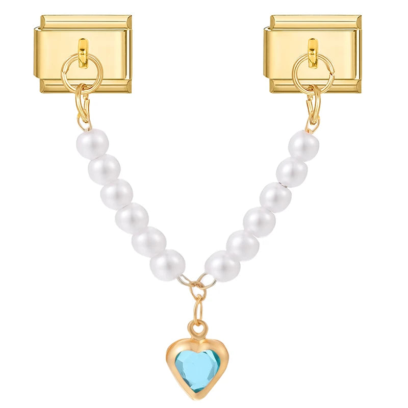 Zlatý chain "Charm" z nerezové oceli s perlami a tyrkysovým srdcem.