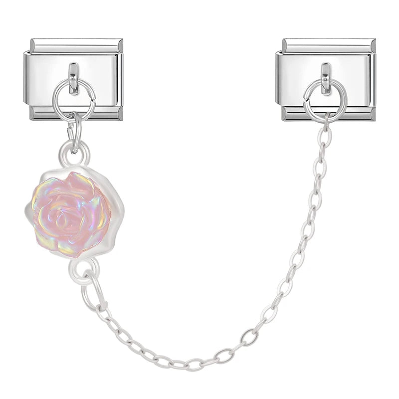 Stříbrný chain "Charm" z nerezové oceli s růžovou růží.