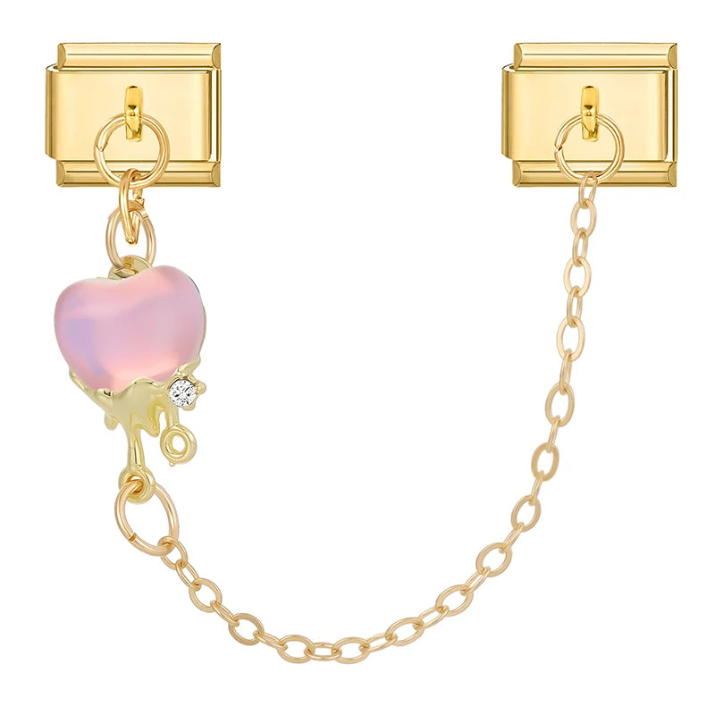 Zlatý chain "Charm" z nerezové oceli s gemem v podobě růžového srdce.