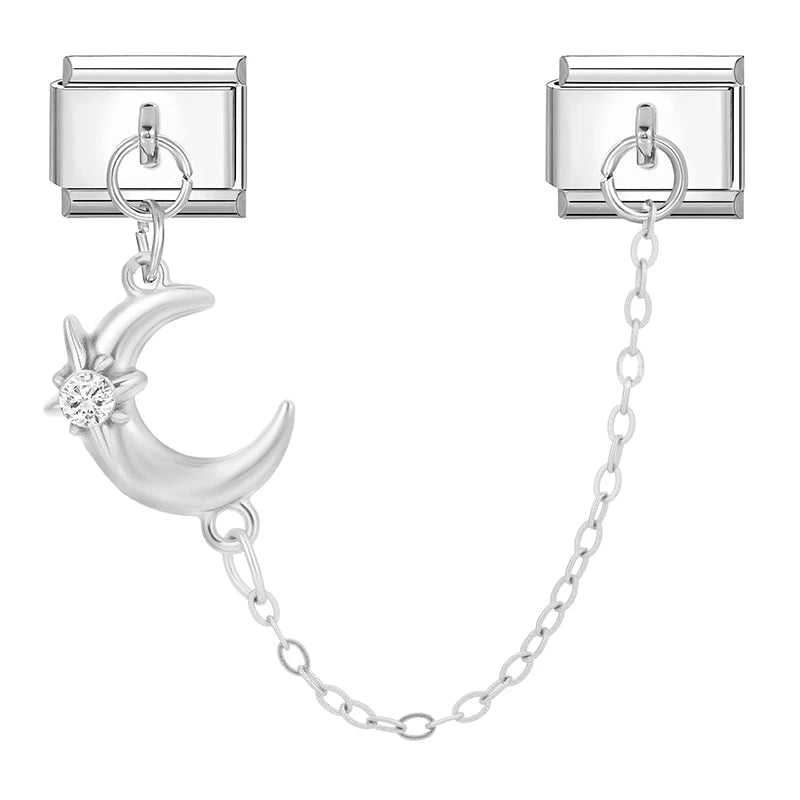 Stříbrný chain "Charm" z nerezové oceli se stříbrným měsícem a s hvězdou.