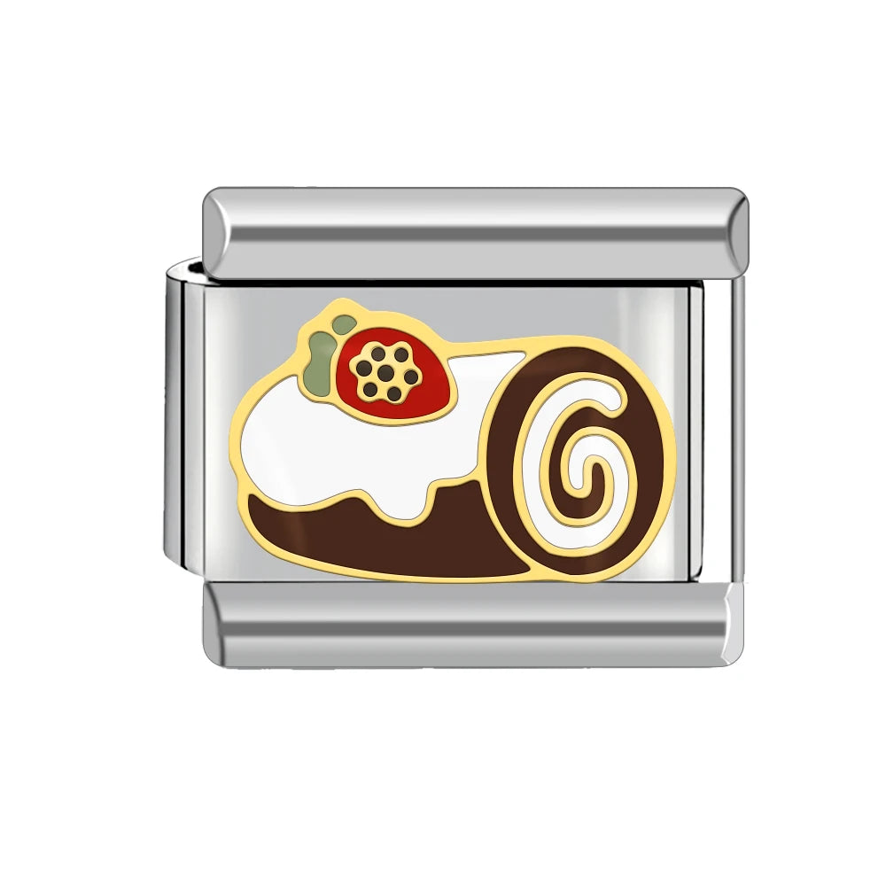 "Charm" z nerezové oceli ve stříbrné barvě s čokoládovou roládou.