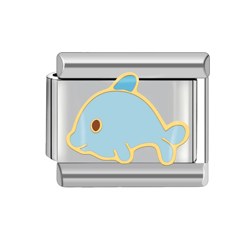 Stříbrný "Charm" z nerezové oceli s delfínem se zlatým obrysem.