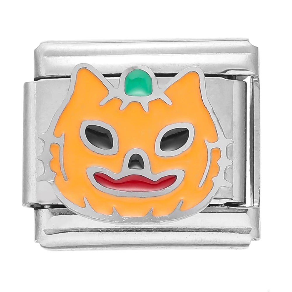 Stříbrný "Charm" z nerezové oceli s dýní ve tvaru kočky.
