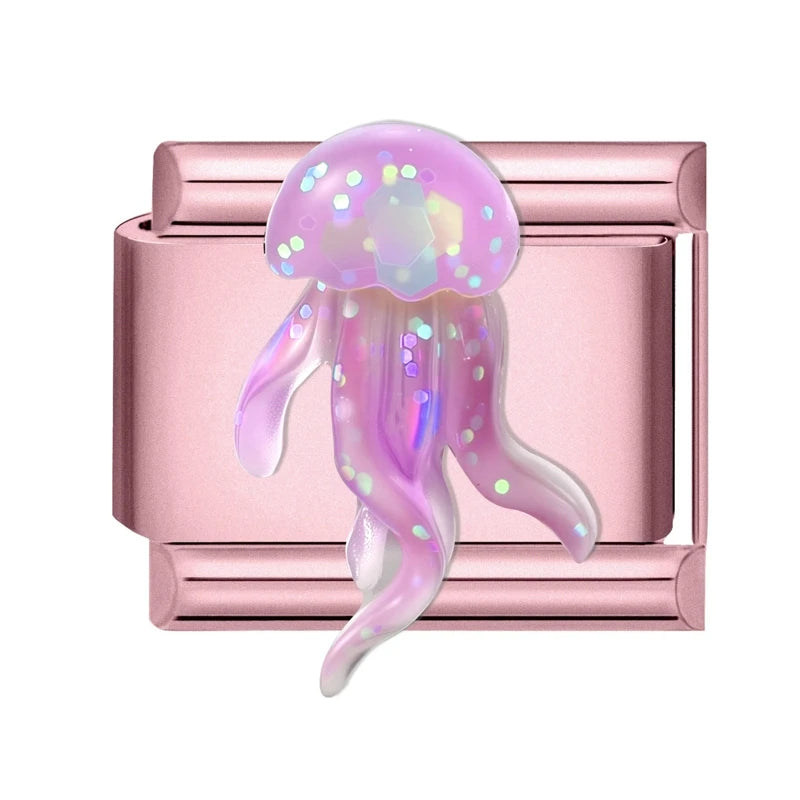Růžový "Charm" z nerezové oceli s medúzou v holografické barvě.