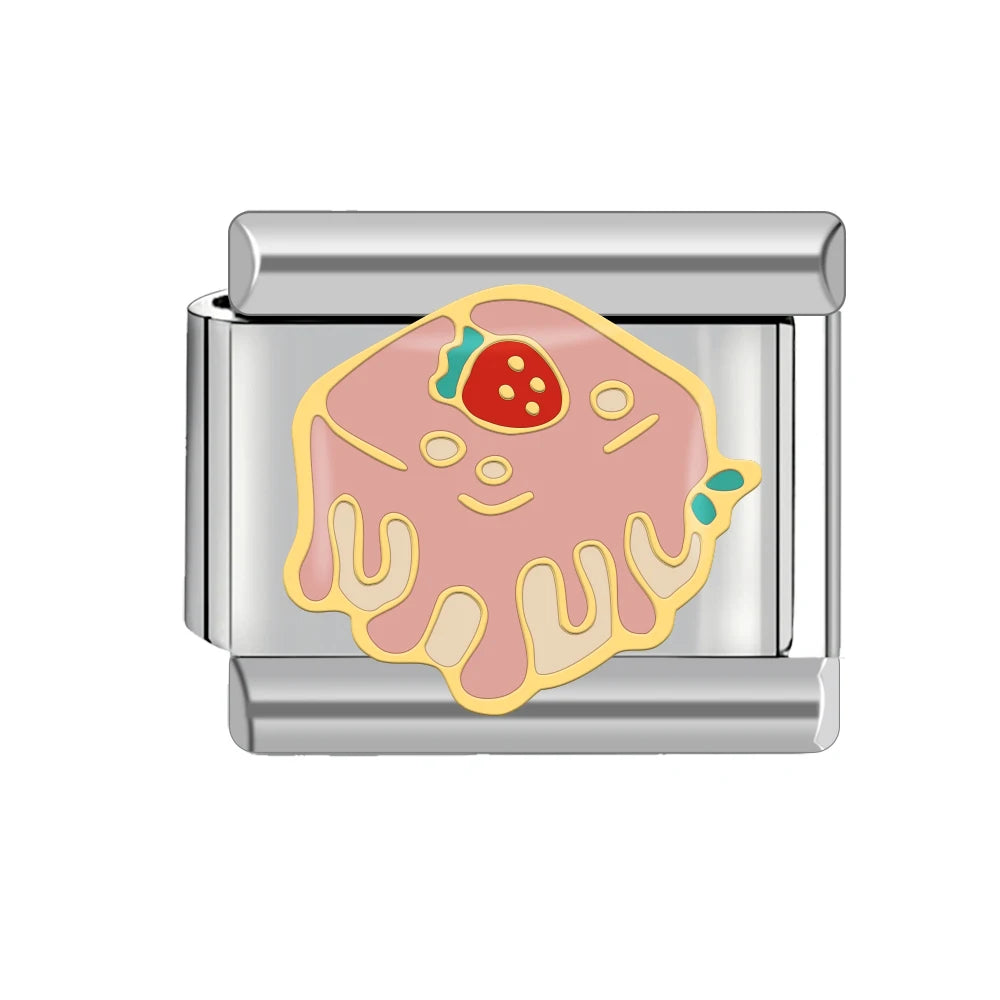 "Charm" z nerezové oceli ve stříbrné barvě s jahodovým dortem s polevou.