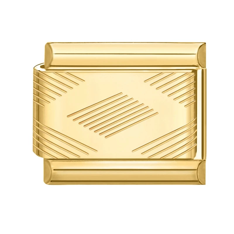 Zlatý "Charm" z nerezové oceli s kosočtvercem a texturou.