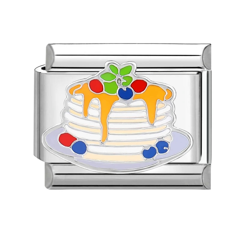 Stříbrný "Charm" z nerezové oceli s lívanci s polevou a borůvkami.