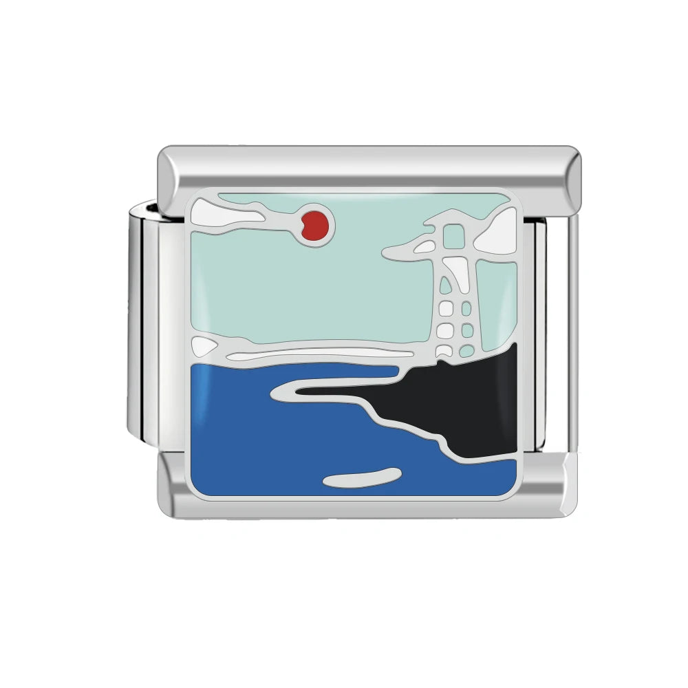 Stříbrný "Charm" z nerezové oceli s majákem u moře.