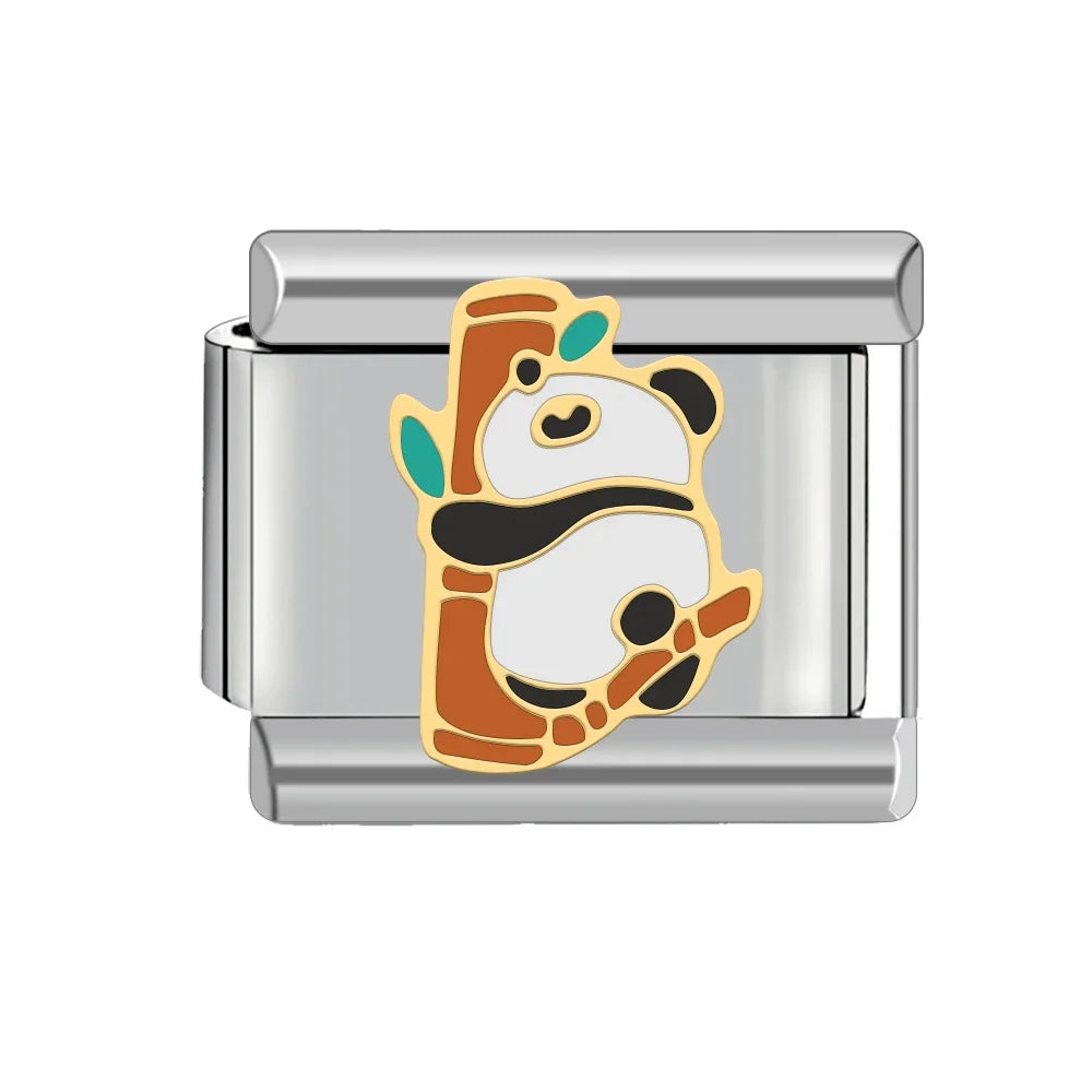 "Charm" z nerezové oceli ve stříbrné barvě s pandou s bambusem.