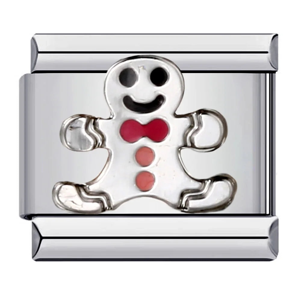 "Charm" z nerezové oceli ve stříbrné barvě s vánočním perníčkem.