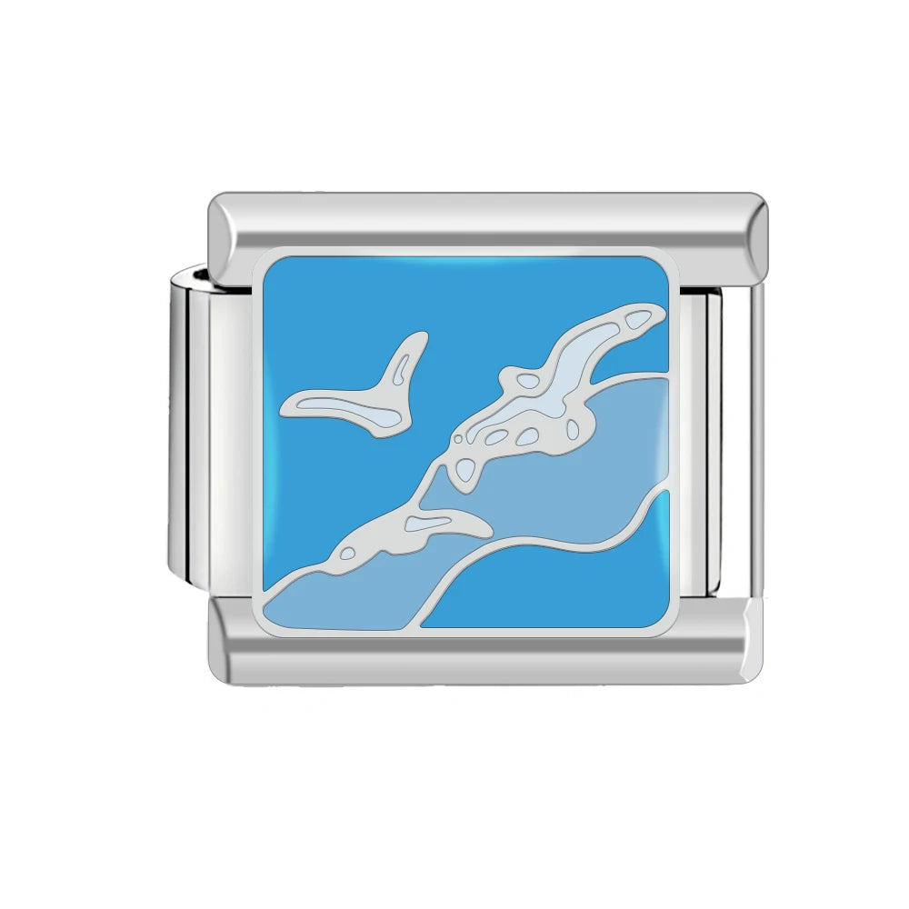 Stříbrný "Charm" z nerezové oceli s rackama na nebi.