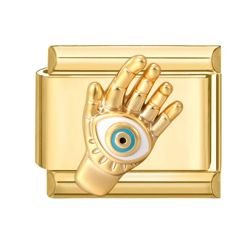 Zlatý "Charm" z nerezové oceli s rukou a evil eye.