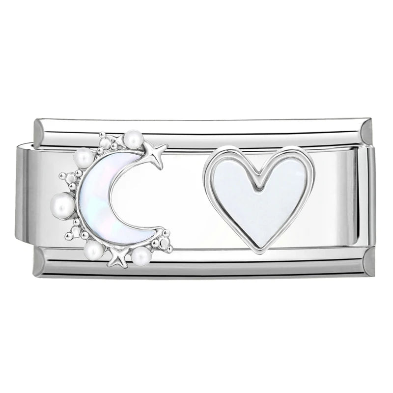 "Double Charm" z nerezové oceli s měsícem a srdcem.