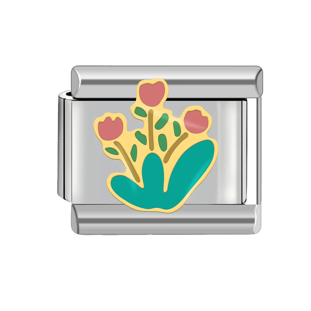 "Charm" z nerezové oceli ve stříbrné barvě se třemi tulipány.