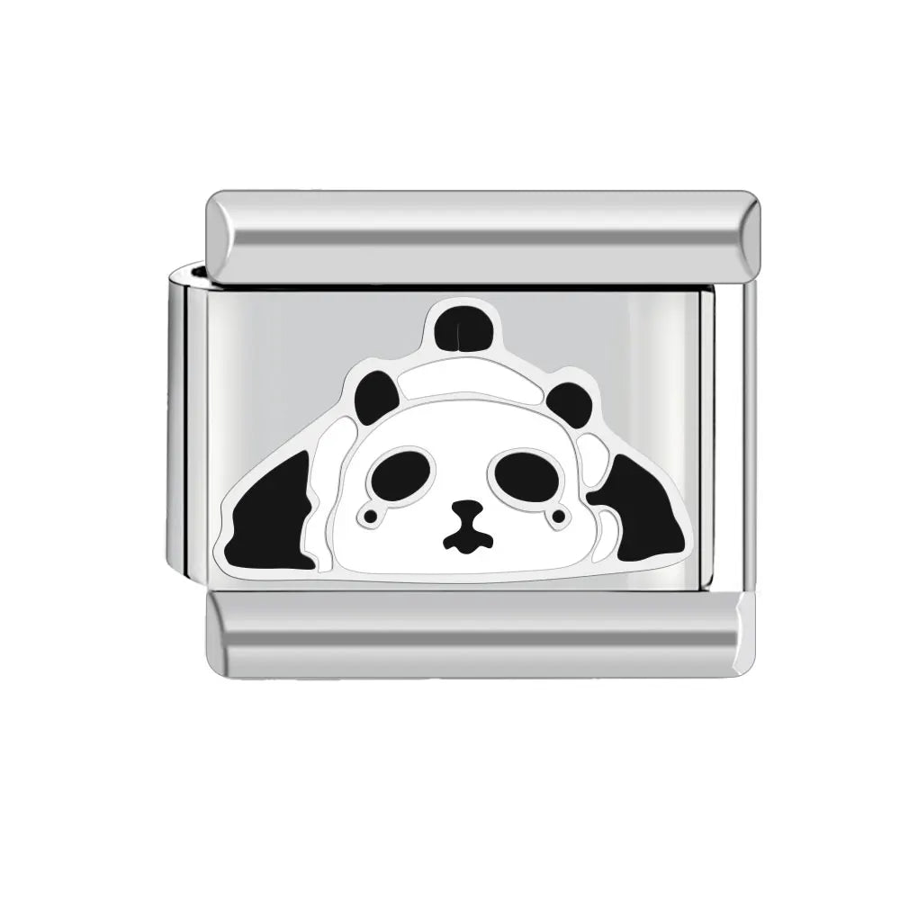 Stříbrný "Charm" z nerezové oceli s unavenou pandou.