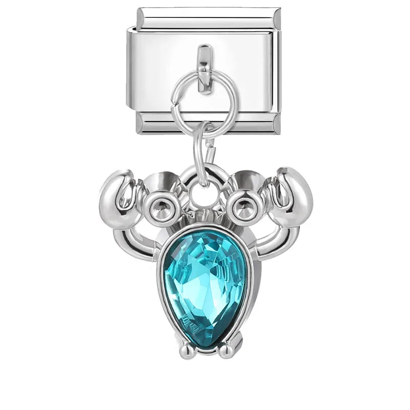 Stříbrný visící "Charm" z nerezové oceli s krabem s velkým tyrkysovým gemem.