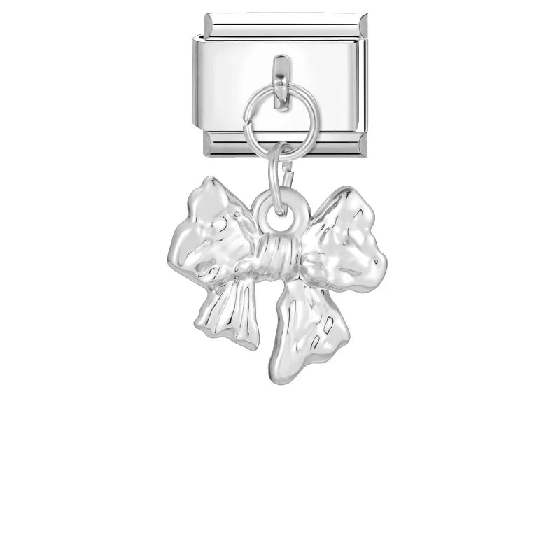 Visící "Charm" z nerezové oceli ve stříbrné barvě se stříbrnou velkou mašlí.