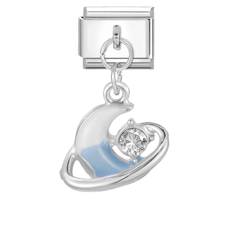 Visící "Charm" z nerezové oceli ve stříbrné barvě s měsícem a kamínkem.