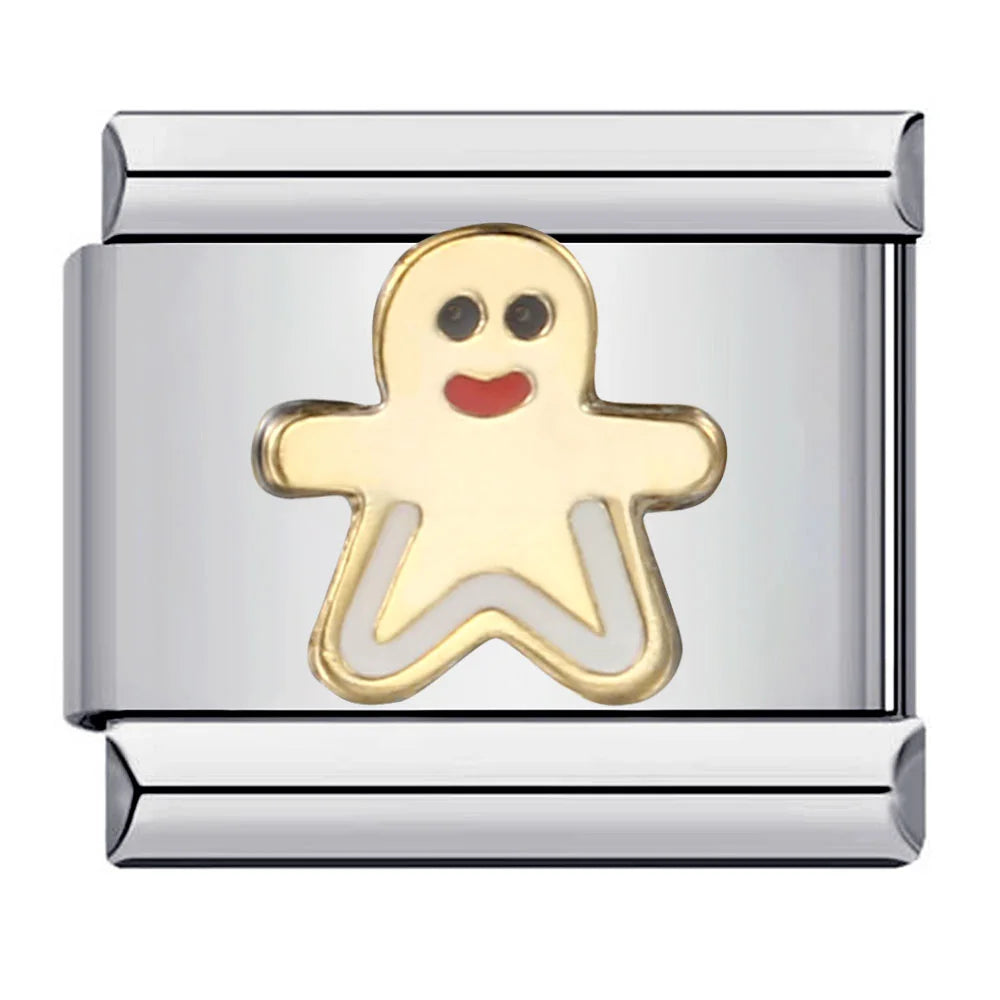 "Charm" z nerezové oceli ve stříbrné barvě se zlatým vánočním perníčkem.